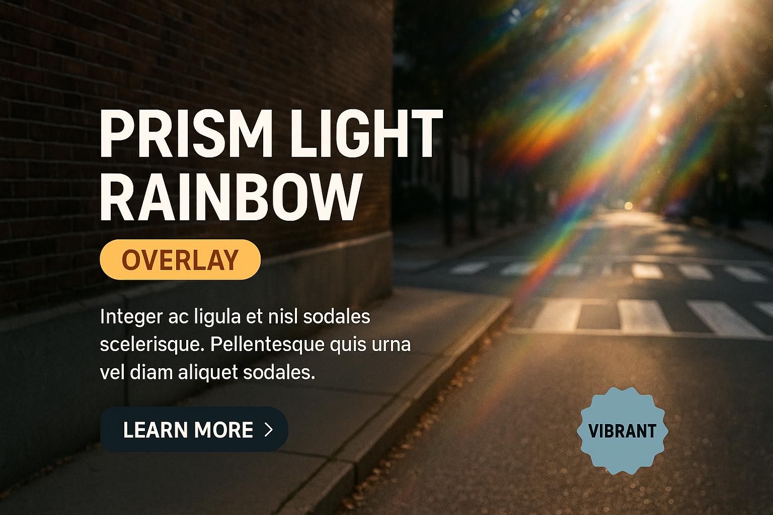 /Collection: /by davooda/Type: PNG/An artistic representation of light through a prism creating a rainbow effect, set against a realistic street backdrop. Features layered text and design elements with a professional aesthetic.
