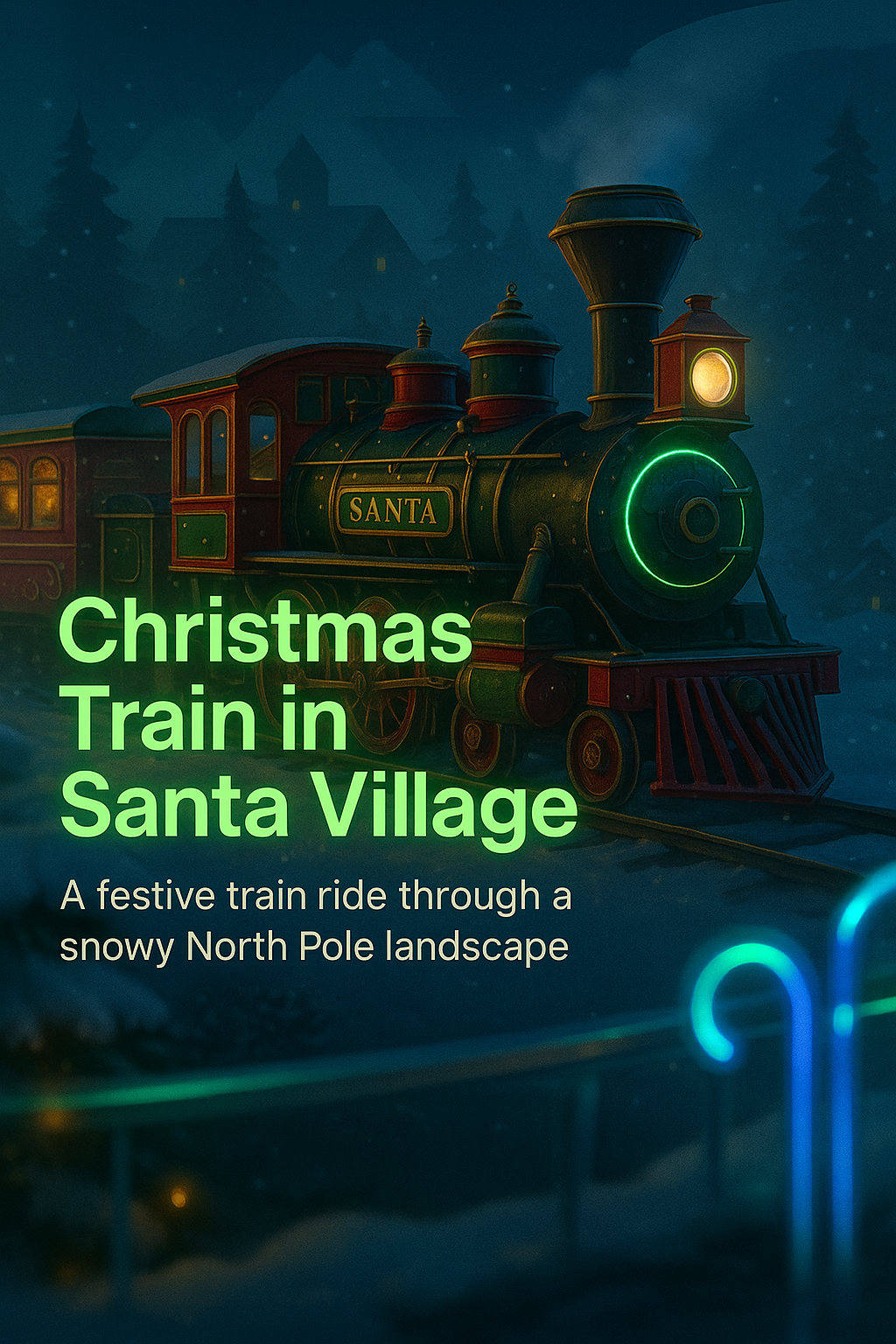 /Collection: /by davooda/Type: PNG/Enchanting digital artwork showcasing a Christmas train navigating through a snowy North Pole landscape, perfect for holiday-themed promotions and decorations.
