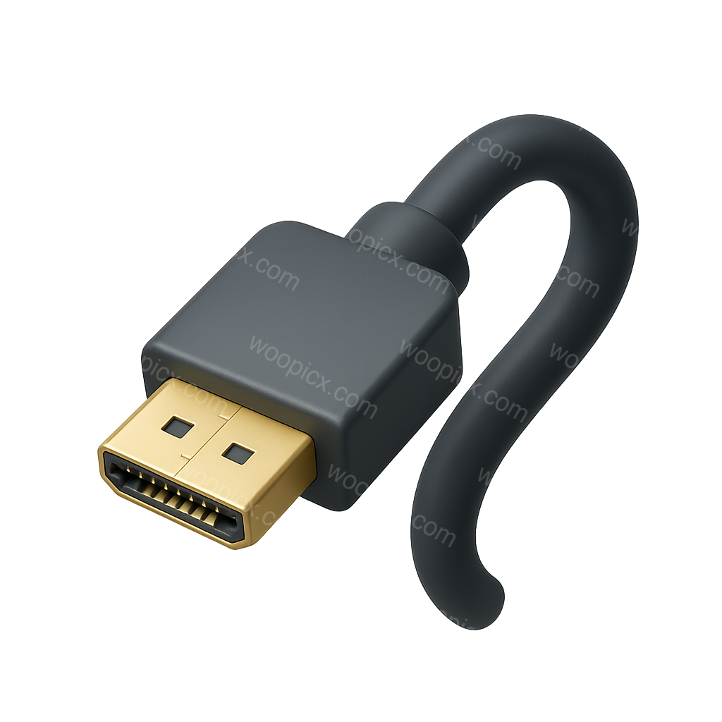 A detailed 3D representation of an HDMI cable, showcasing a gold-plated connector and a sleek, modern design. The icon features an isometric view with a transparent background.