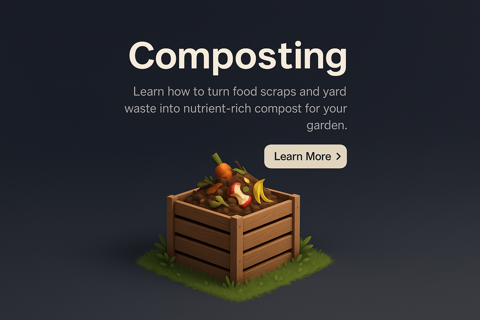 /Collection: /by davooda/Type: PNG/A detailed 3D illustration showing a compost bin filled with food scraps and yard waste, set against a dark gradient background. The design emphasizes realism and clarity.