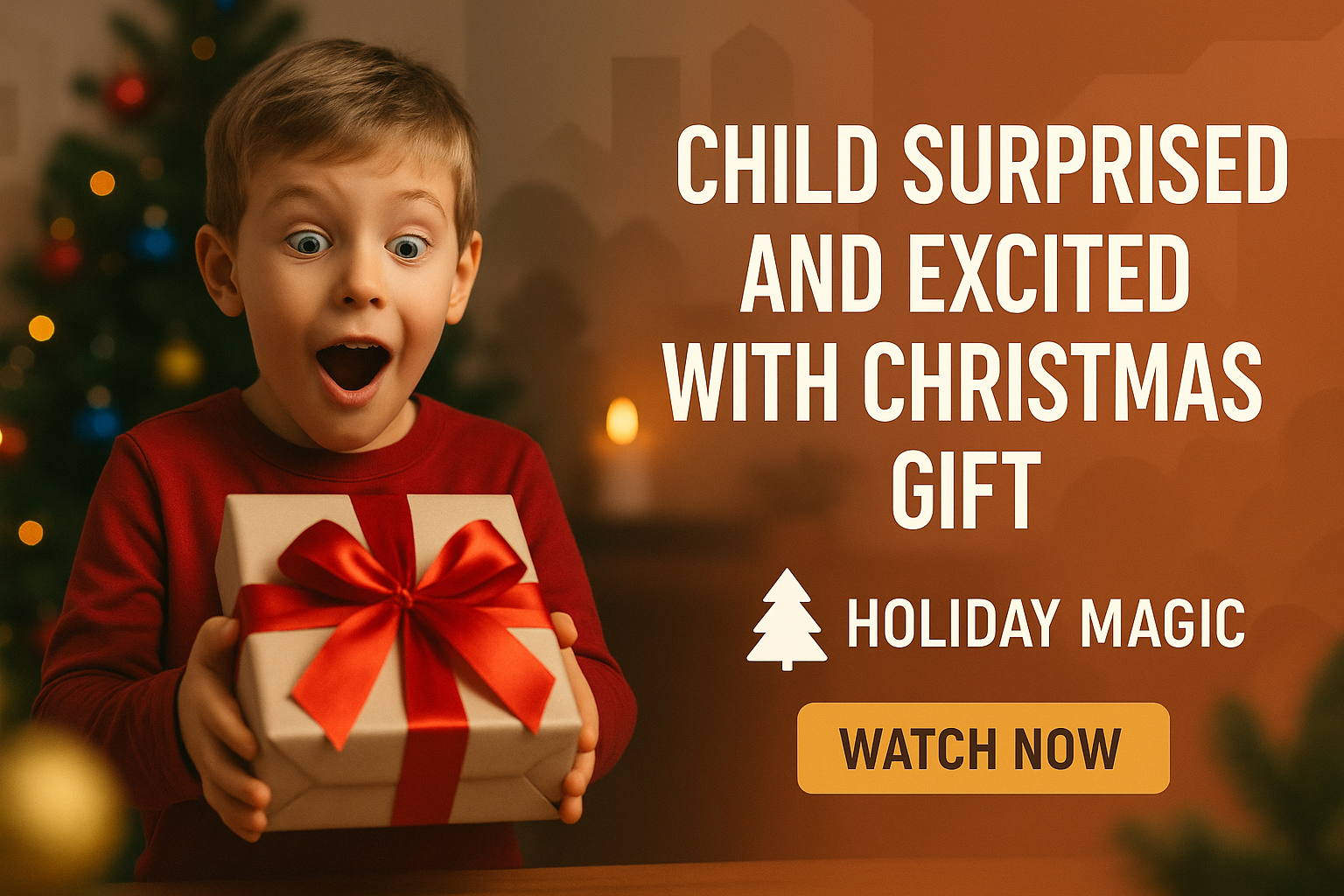 Engaging Holiday Marketing Image Featuring a Surprised Child with a Gift