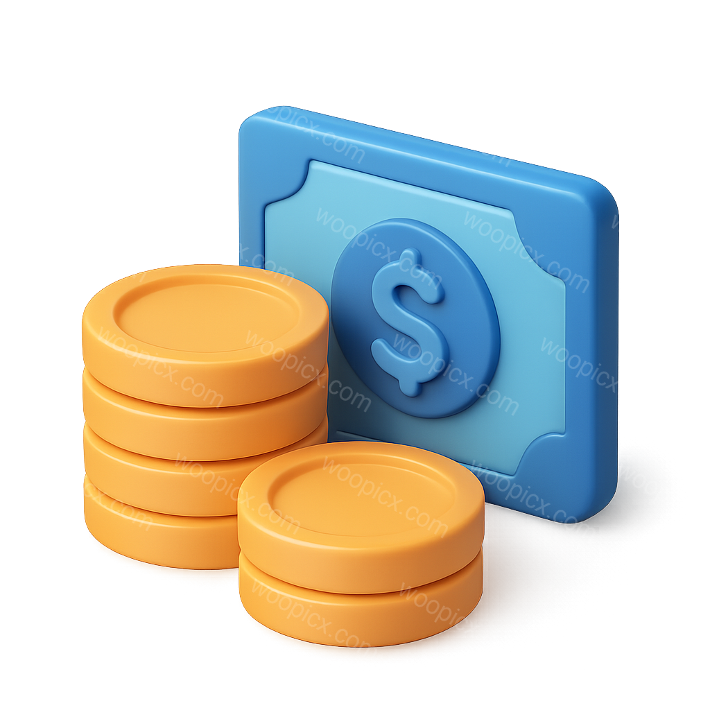 /Premium/Collection: /by davooda/A visually striking 3D icon featuring a stack of orange coins next to a blue banknote, all set against a gradient background. The isometric view enhances the depth and volumetric feel of the design.