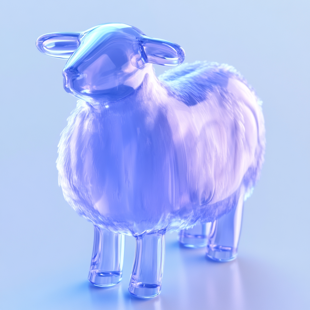 3D Rendered Glass Sheep Figurine with Soft Lighting