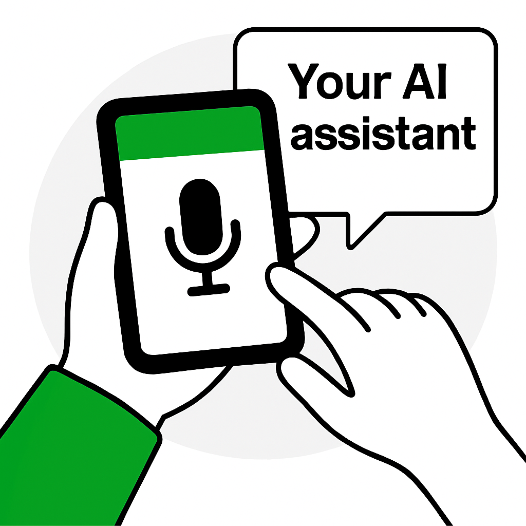 Illustration of a Hand Holding a Smartphone with Voice Assistant Feature