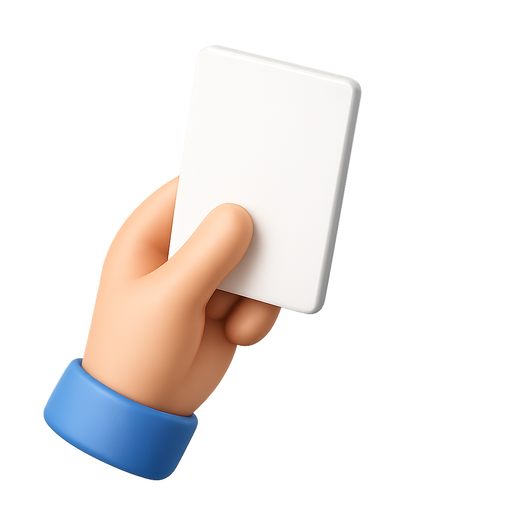 /Collection: /by davooda/Type: PNG/A stylized 3D icon depicting a hand holding a plain card, designed with a three-quarter view for a volumetric effect. The background is transparent, enhancing the focus on the hand and card.