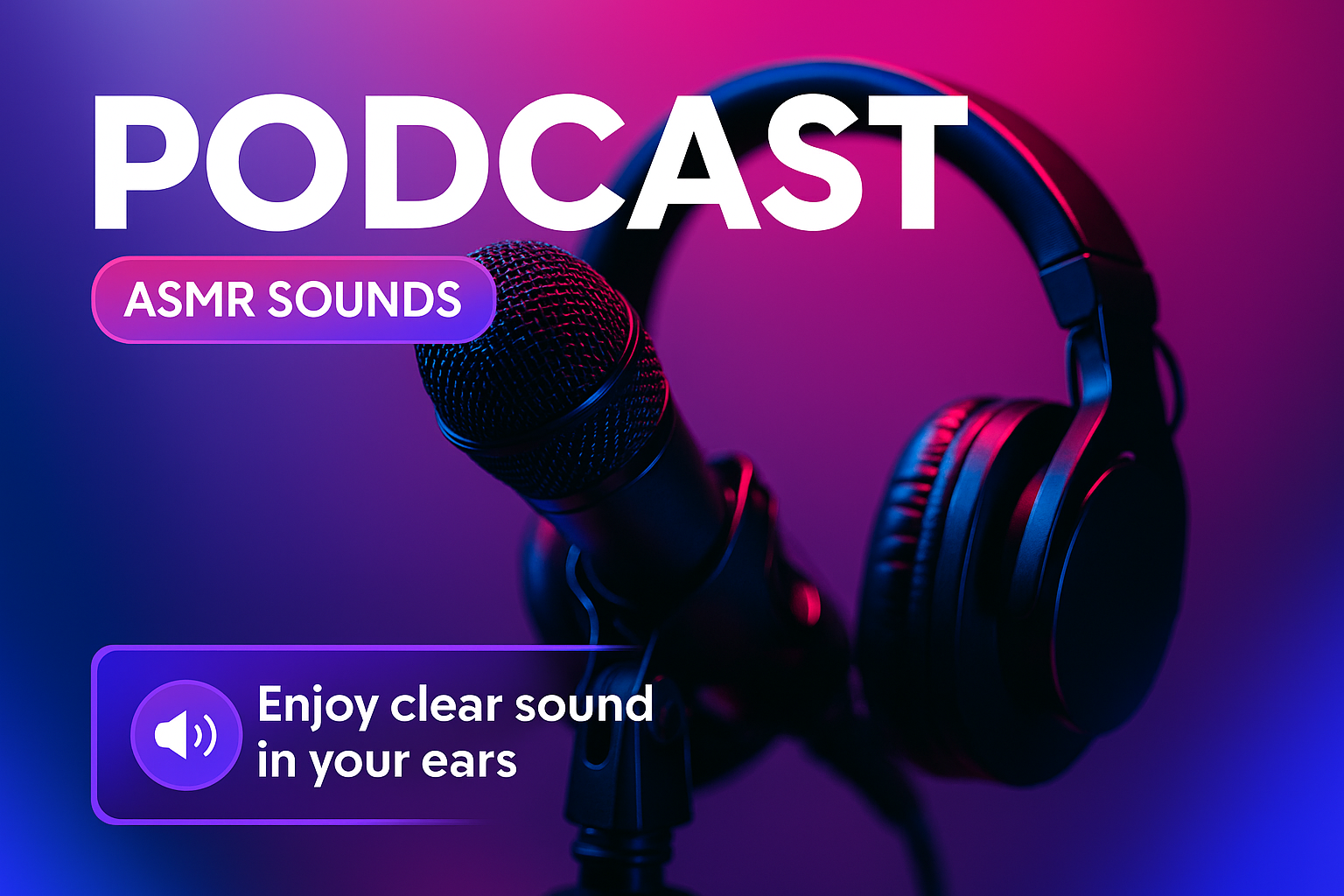 /Collection: /by davooda/Type: PNG/A vibrant close-up of a microphone and headphones set against a neon-lit backdrop, ideal for podcasting and ASMR. The scene features cyan and magenta hues, enhancing the dynamic atmosphere.