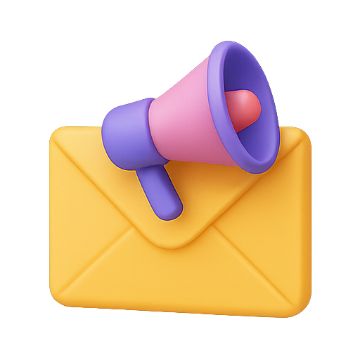Colorful 3D icon combining an envelope and a megaphone, symbolizing email notifications or announcements. Ideal for digital communication platforms and marketing materials.