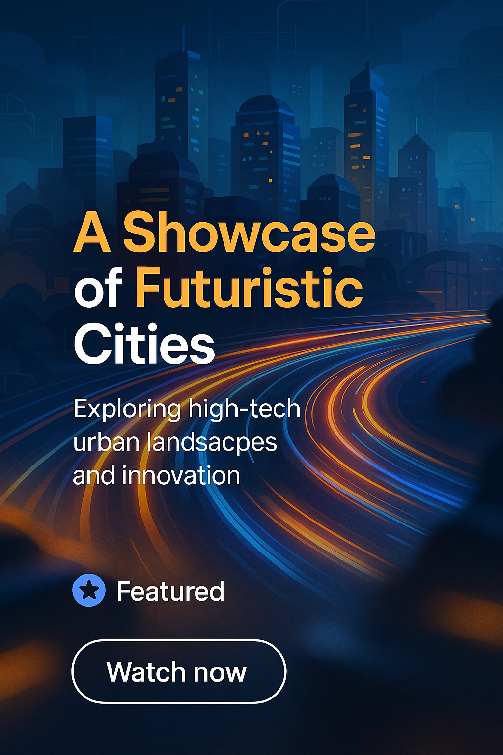 Engaging promotional graphic featuring a futuristic cityscape with vibrant lighting, suitable for tech or urban innovation content. Designed to attract viewers to explore high-tech urban landscapes.