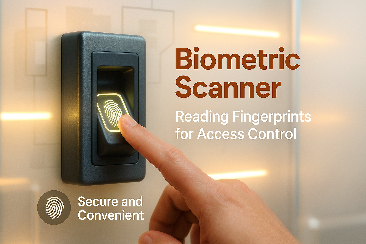 /Collection: /by davooda/Type: PNG/A modern biometric scanner designed for access control, showcasing a user interacting with the device. The sleek design emphasizes security and convenience, ideal for technological and security-related contexts.