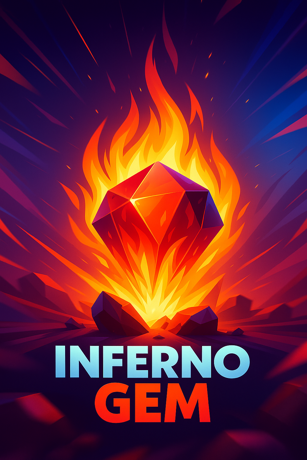 /Collection: /by davooda/Type: PNG/A striking 3D illustration of an inferno gem surrounded by flames and dynamic lines, set against a gradient background. The title stands out with bold typography.