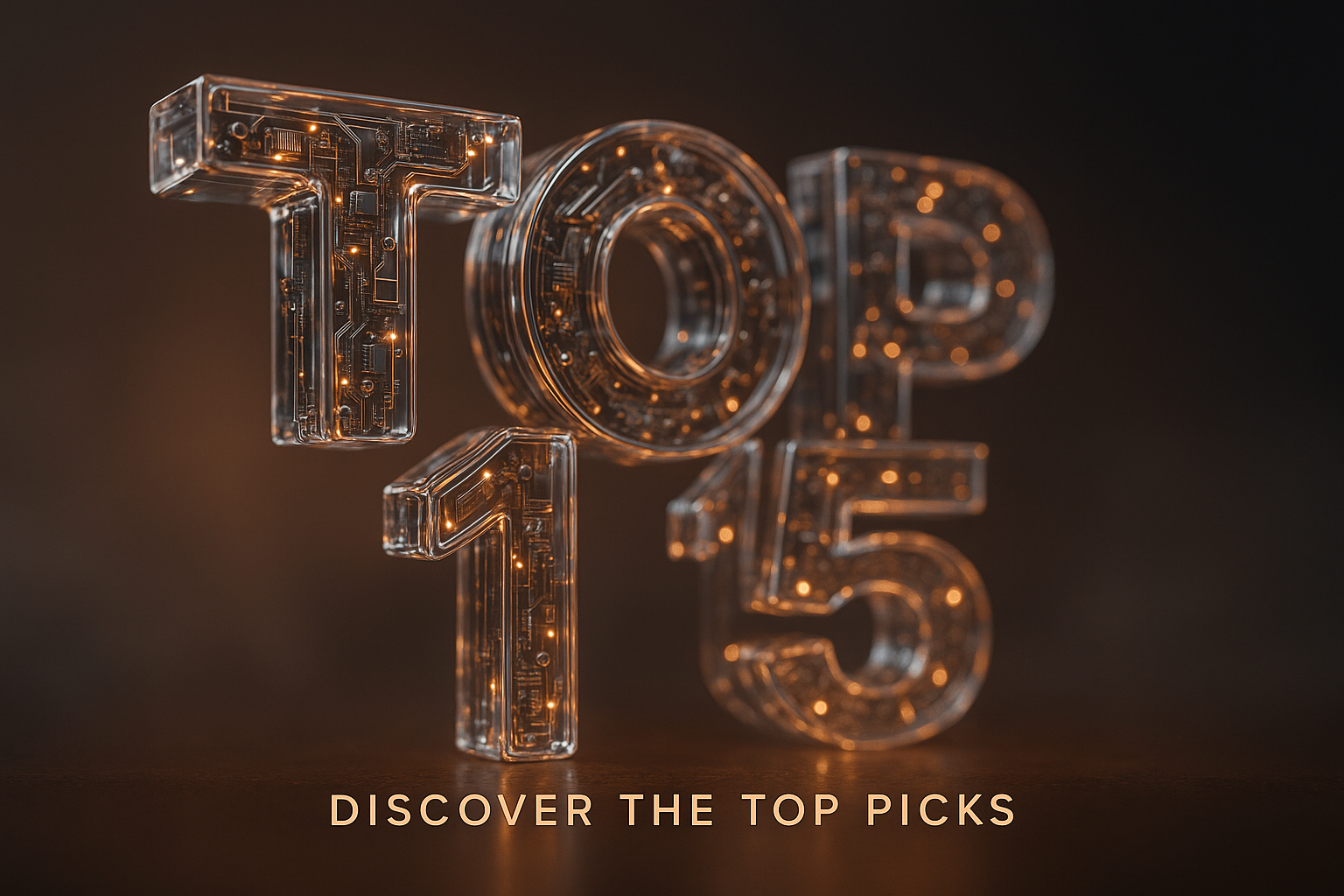Hyperrealistic 3D Artwork of 'TOP 15' with Glowing Elements