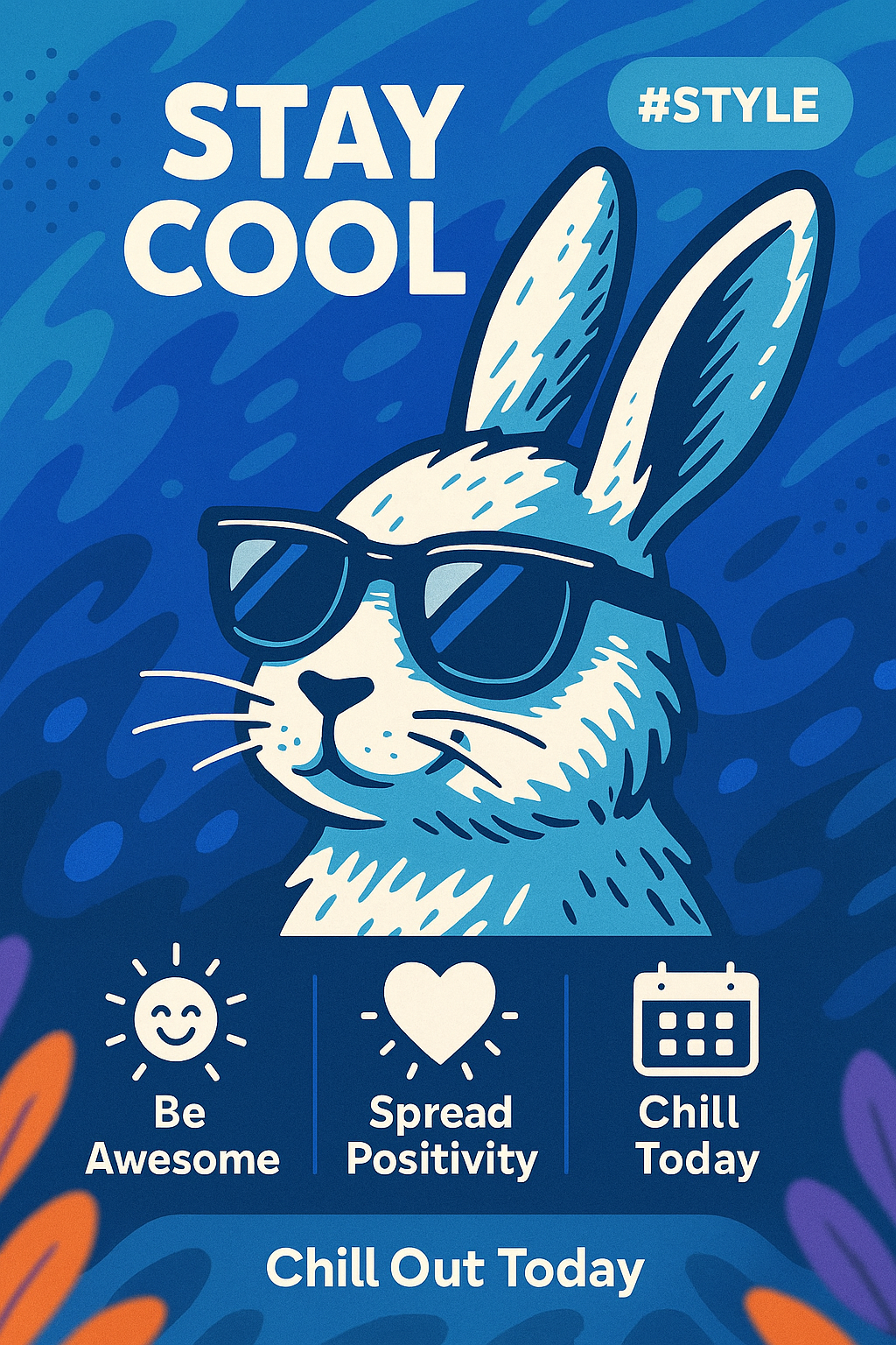 Colorful and playful illustration featuring a rabbit wearing sunglasses, promoting a positive and relaxed lifestyle. Ideal for social media posts or motivational content.