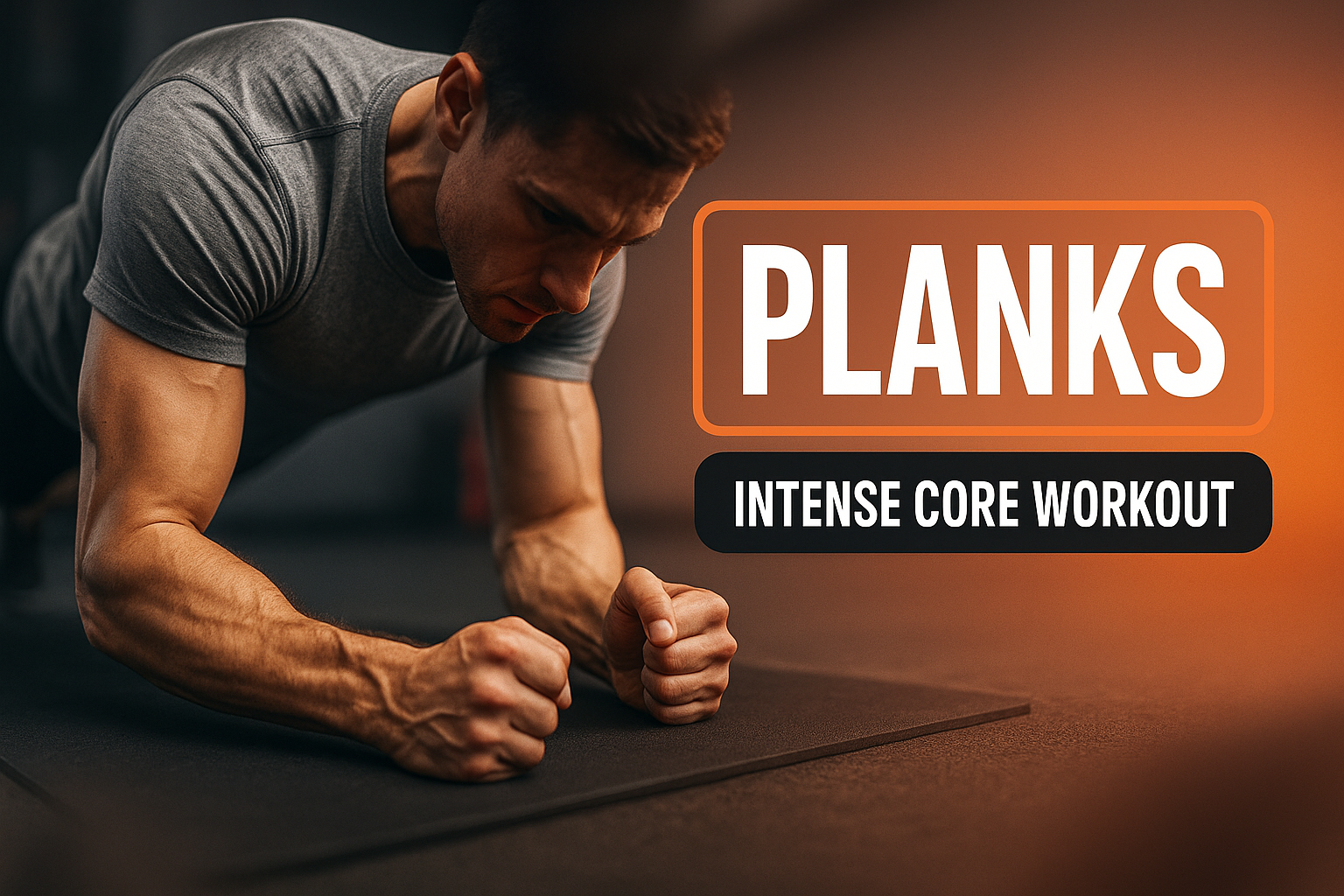 Dynamic fitness image showcasing a male athlete performing planks, emphasizing core strength. Ideal for fitness blogs, workout guides, and social media posts.