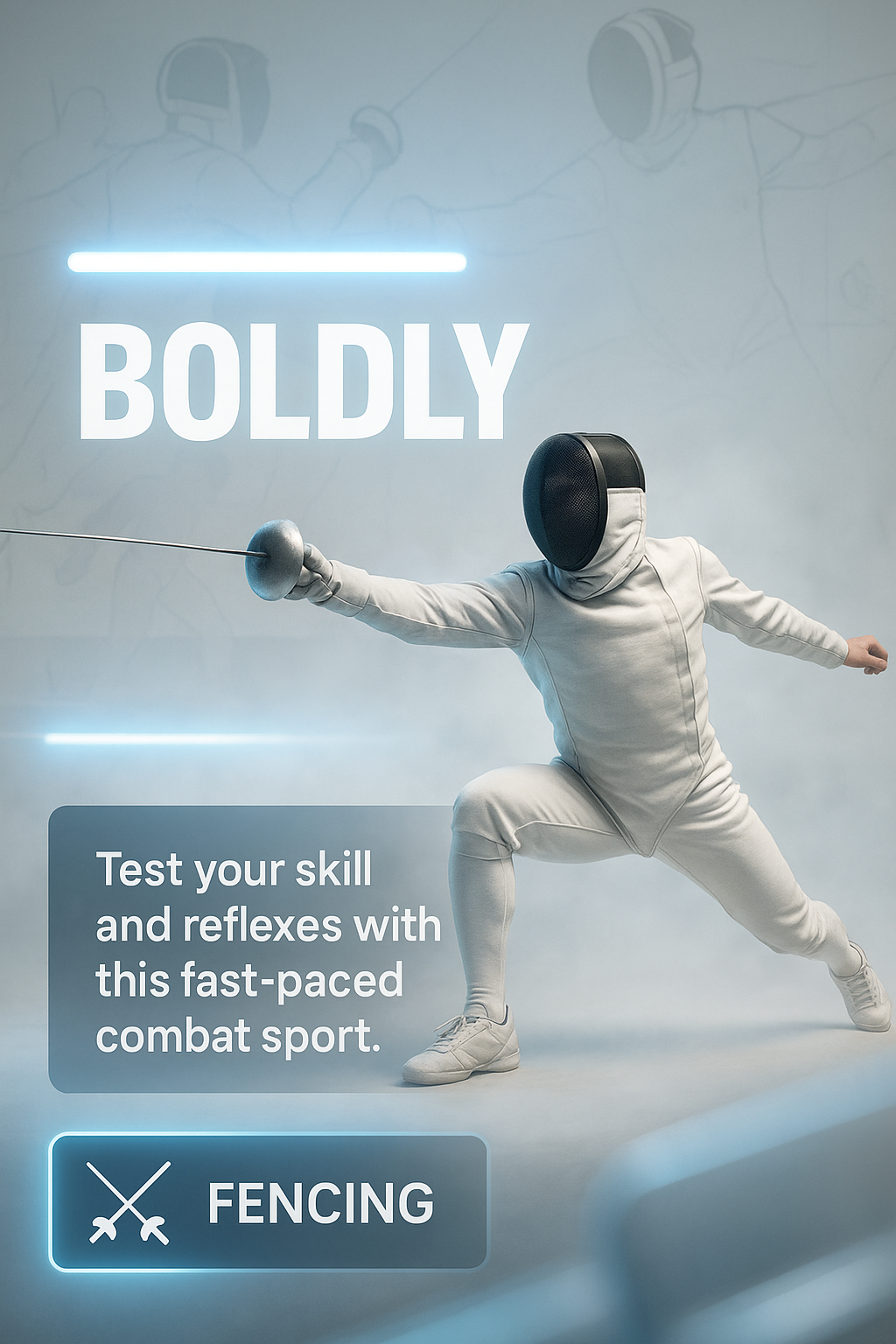 Dynamic Fencing Promotional Graphic Featuring Athlete in Action