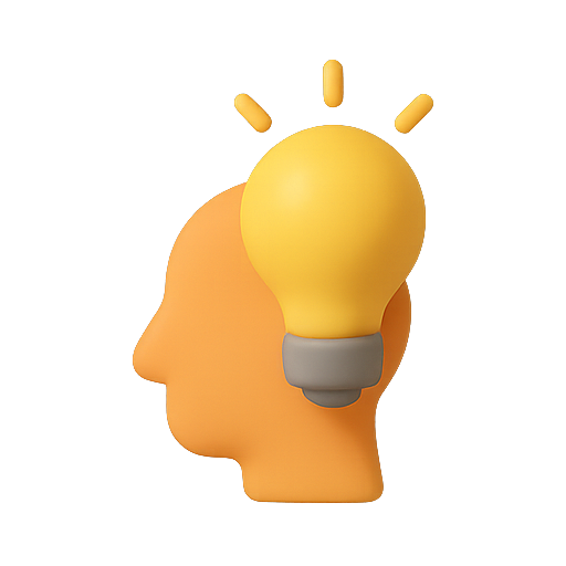 /Collection: /by davooda/Type: PNG/A vibrant 3D illustration depicting a human head silhouette with a lightbulb, representing creativity and ideas. Ideal for use in educational or marketing materials focused on innovation.