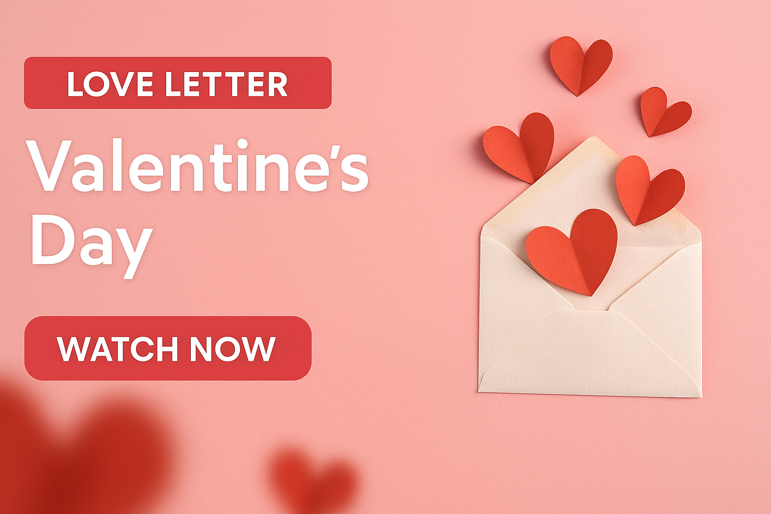 A beautifully crafted love letter envelope adorned with paper hearts, set against a soft pink background. Ideal for Valentine's Day or anniversary themes.