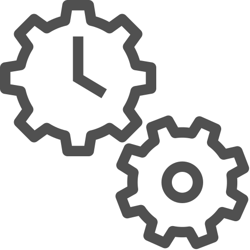 outline simple icon: clock, efficiency, gears, planning, productivity