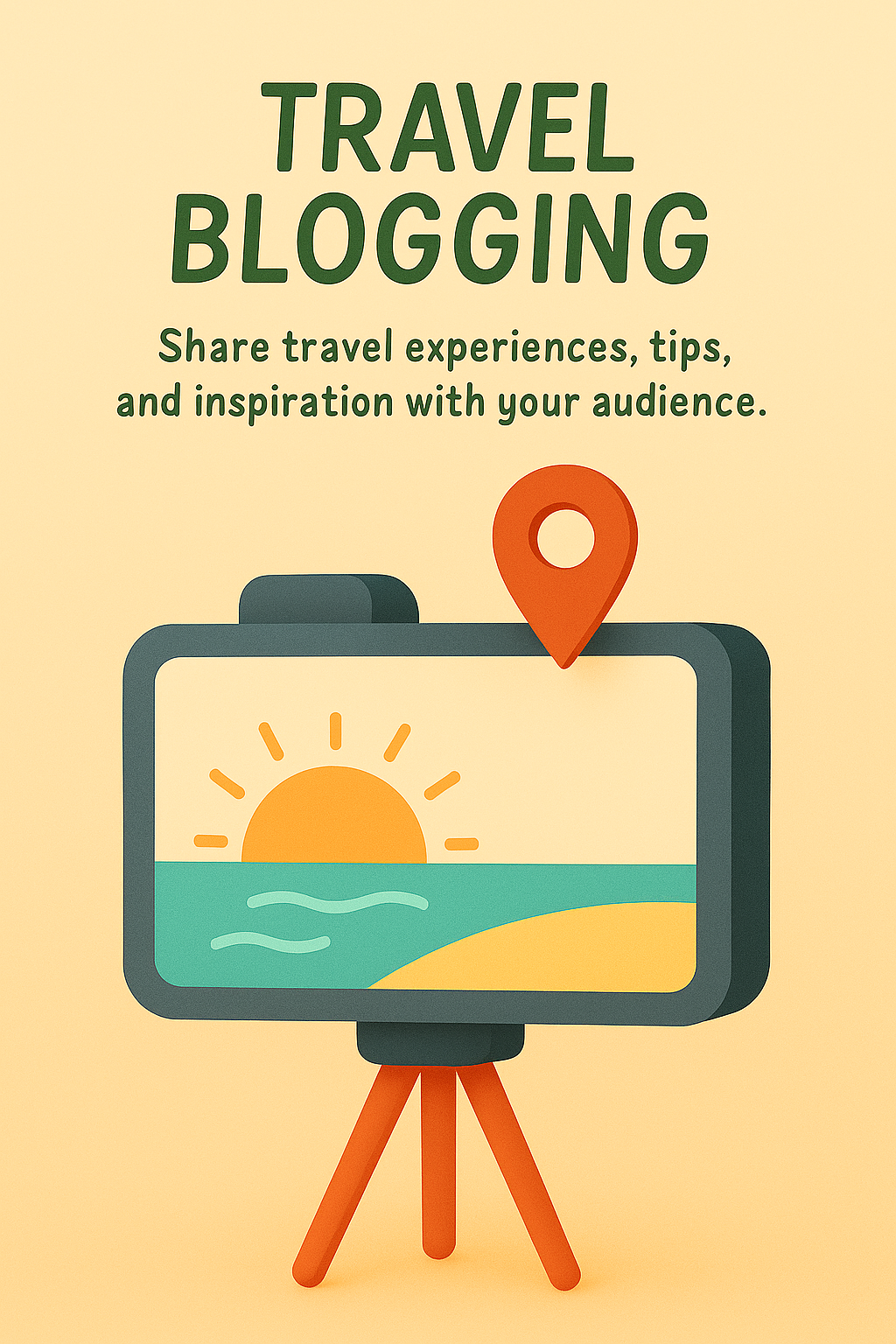 Travel Blog Promotional Graphic Featuring Camera and Sunset
