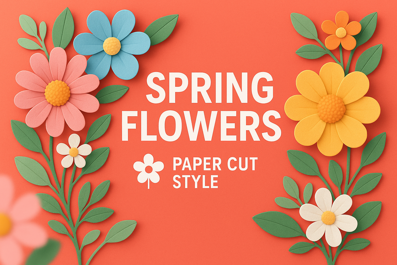 Colorful Spring Flowers in Paper Cut Style Graphic