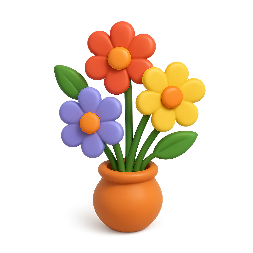 Colorful 3D Flower Icon with Pot for Modern Designs
