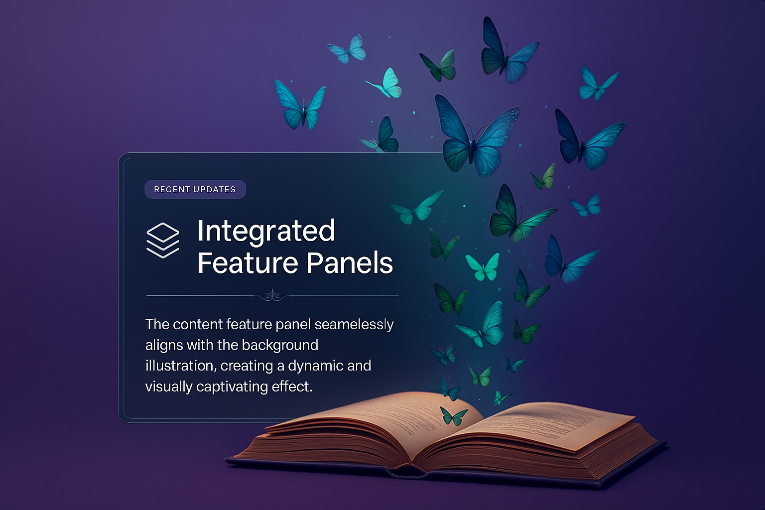 An open book releases a flurry of colorful butterflies against a smooth gradient background, highlighting a creative design for fantasy and literature.