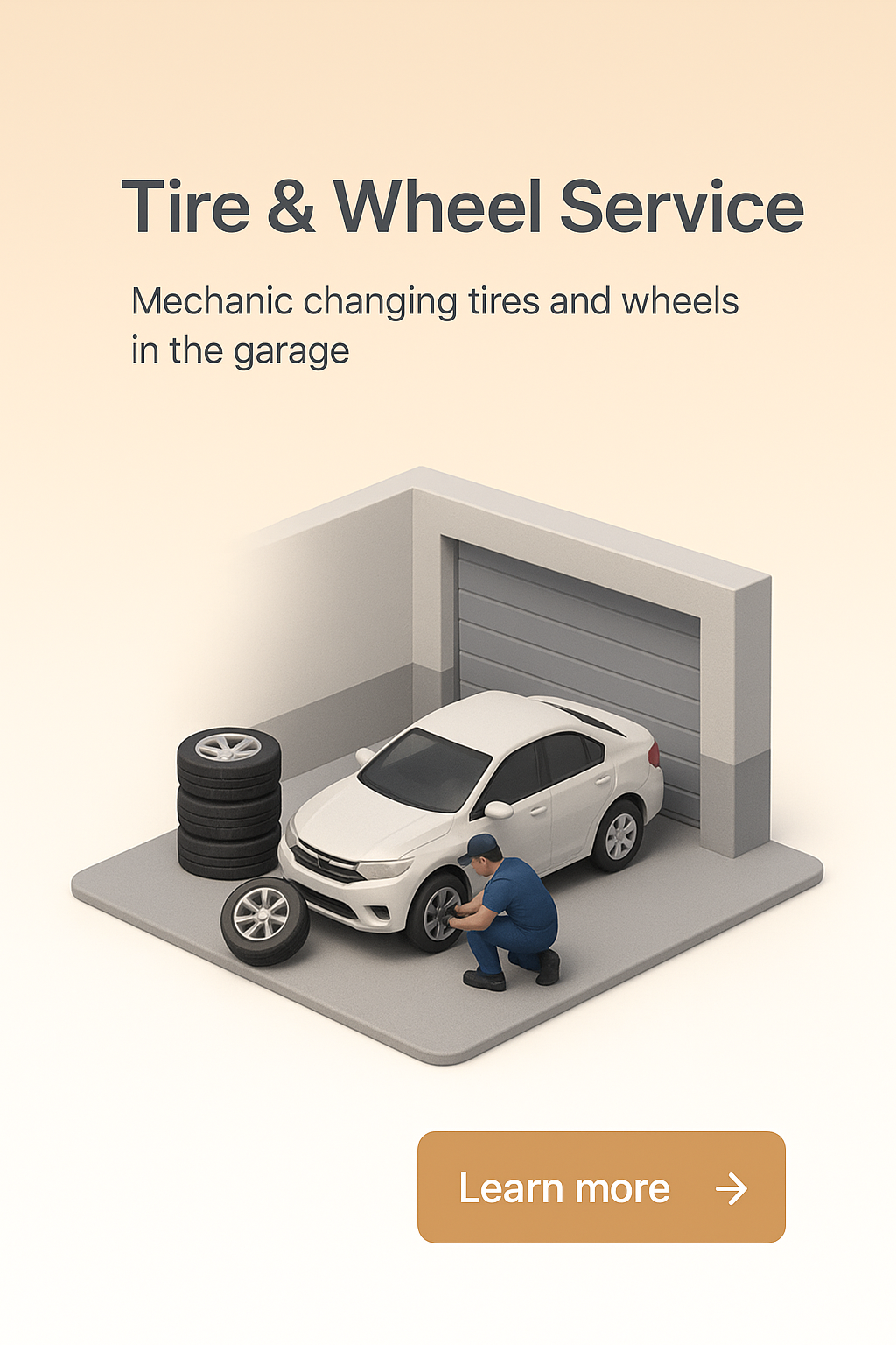 /Collection: /by davooda/Type: PNG/A mechanic is changing tires and wheels in a garage setting, depicted in a detailed 3D style. The scene is zoomed out to showcase the entire environment, emphasizing the service.