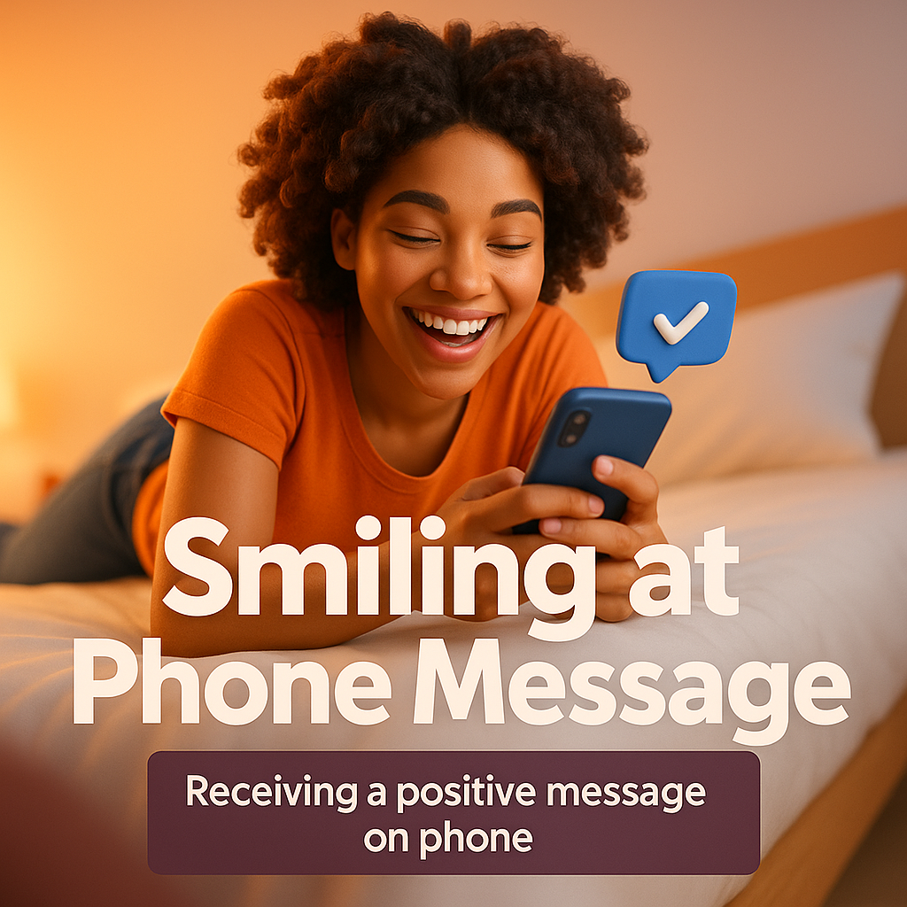 /Collection: /by davooda/Type: PNG/A vibrant image of a person smiling while using a smartphone, conveying positivity and connection. Ideal for social media or marketing materials focusing on communication and happiness.