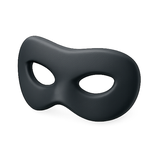 A sleek black mask designed for theatrical performances or costume events, featuring smooth contours and eye openings, ideal for creative expressions.