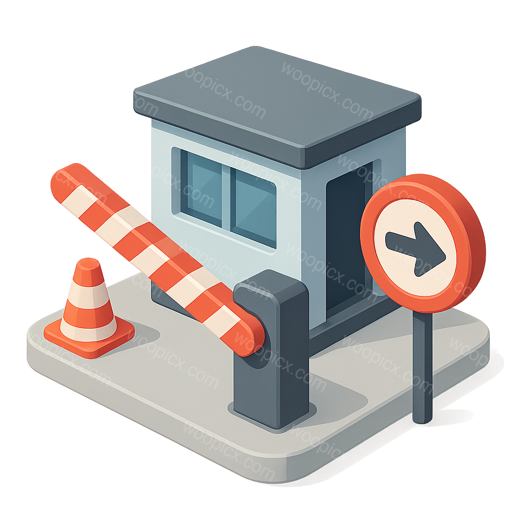 3D Border Crossing Icon with Barrier and Sign