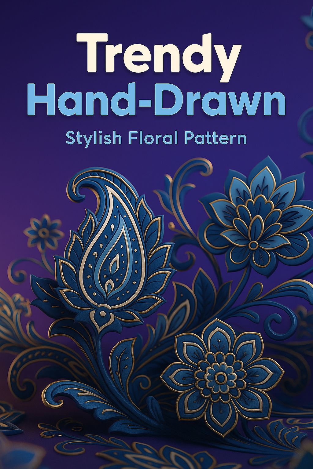 /Collection: /by davooda/Type: PNG/A dynamic, stylish hand-drawn floral pattern featuring paisley and Indian motifs. The design is perfect for fashion, textiles, and wallpaper, showcasing a rich color palette.