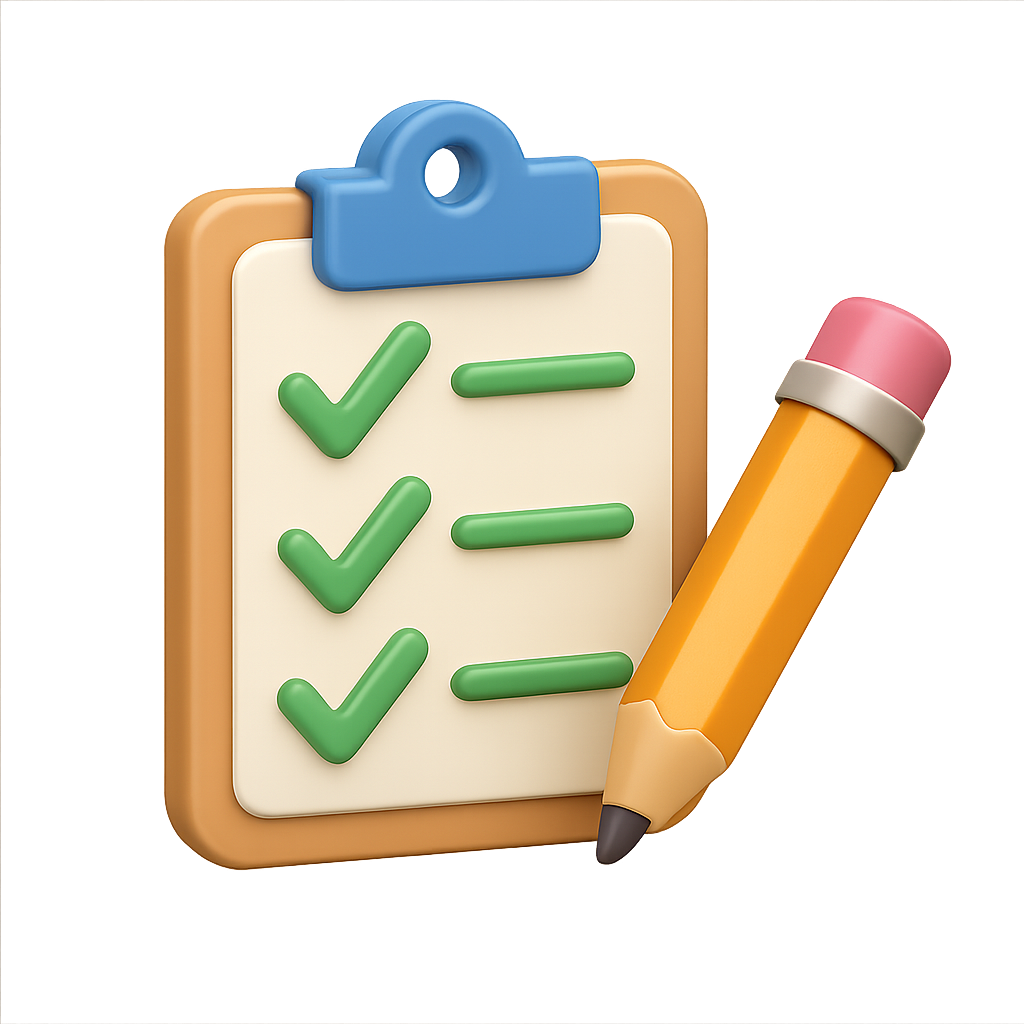 3D Clipboard Icon with Checkmarks and Pencil in Isometric View