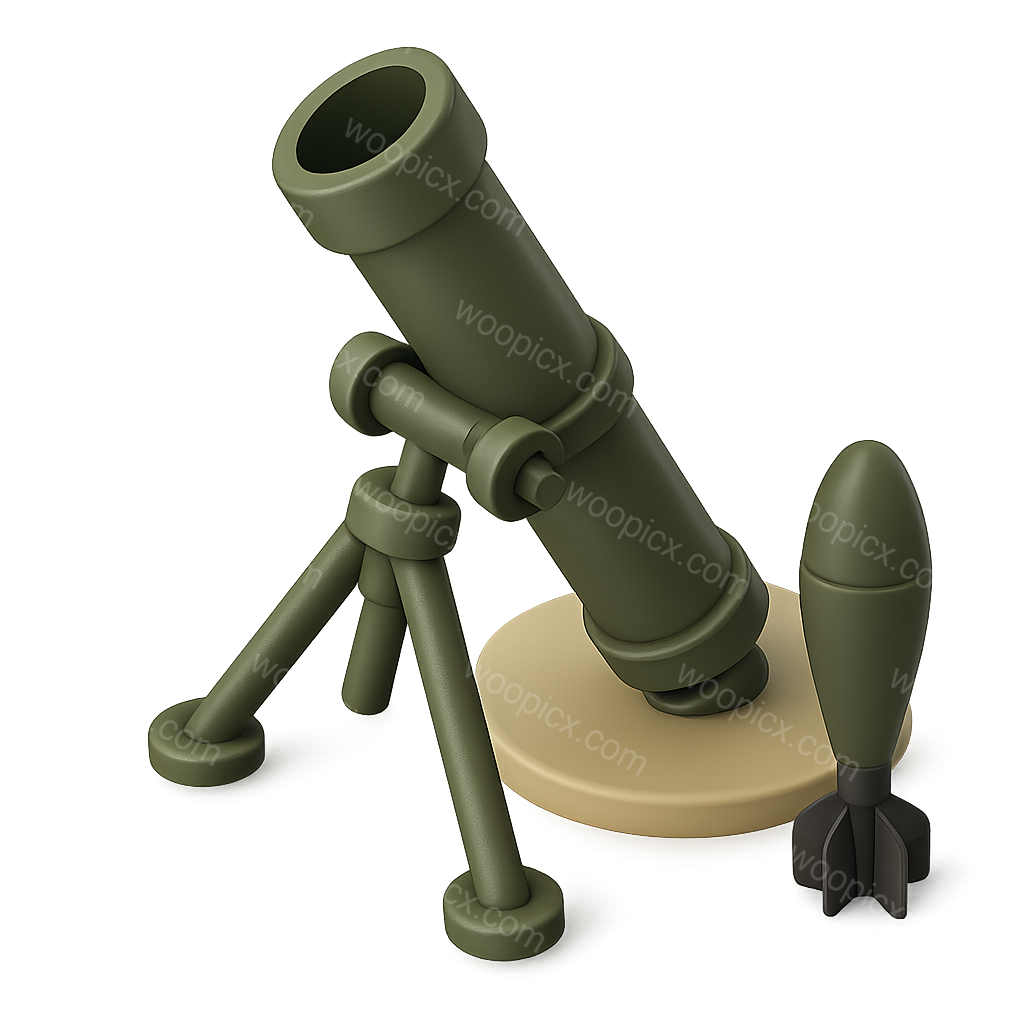 /Premium/Collection: /by davooda/Type: PNG/A stylized 3D illustration of a mortar on a tripod, accompanied by a shell. The design features a three-quarter perspective with a smooth, volumetric feel against a soft gradient background.