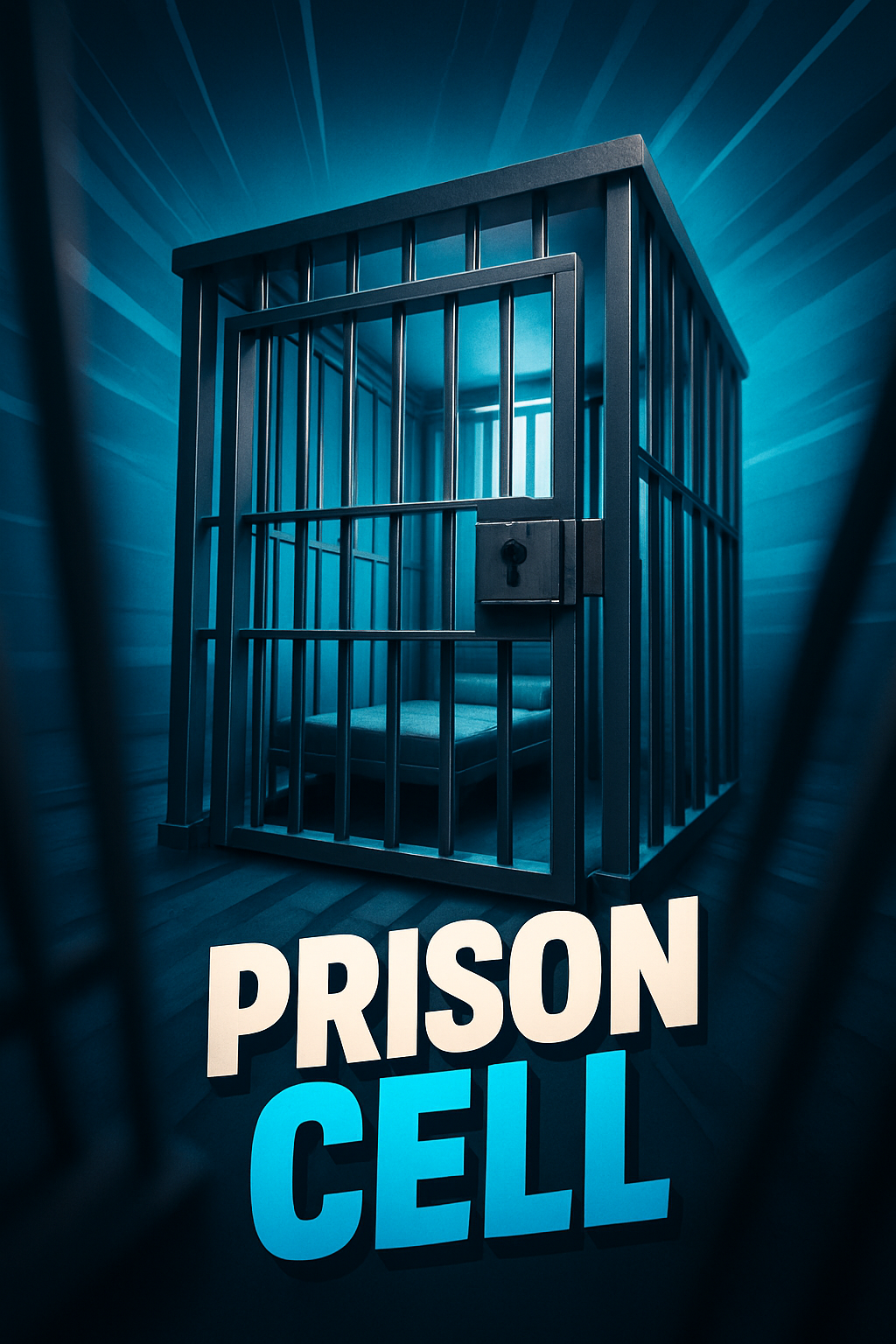 /Collection: /by davooda/Type: PNG/A visually striking 3D illustration of a prison cell, featuring dynamic lines emanating from the center. The bold title 'PRISON CELL' stands out against a smooth gradient background, enhancing the depth and realism.