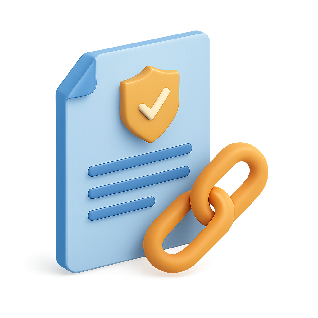 Isometric 3D Smart Contract Icon with Shield and Link