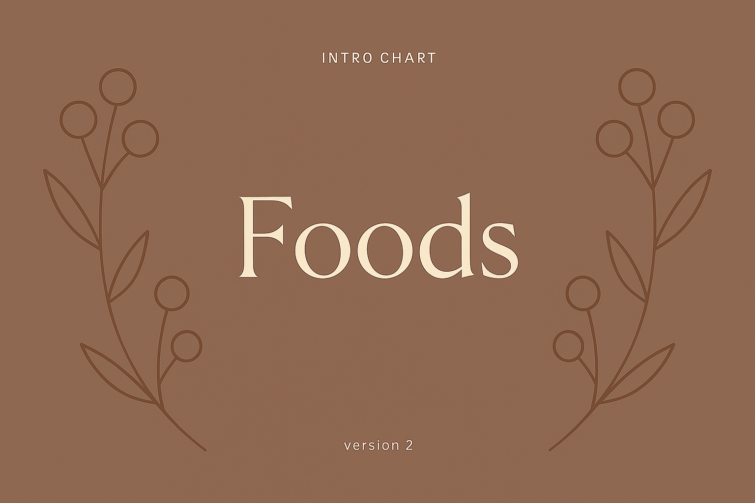 A stylish food menu featuring a warm brown background with elegant floral illustrations. The central text reads 'Foods' in a sophisticated font, complemented by a version number.