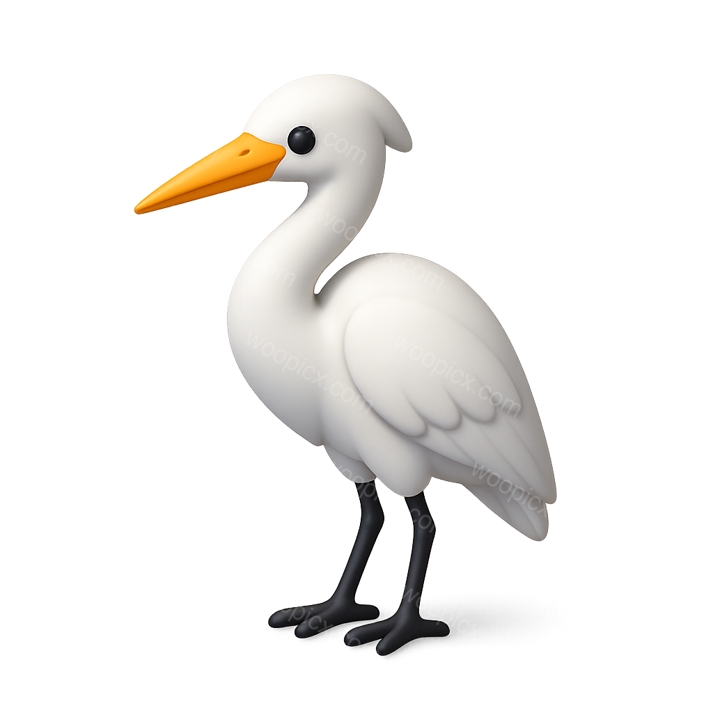 /Premium/Collection: /by davooda/Type: PNG/A stylized 3D rendering of an egret with white feathers and an orange beak, presented in a three-quarter view. The icon features a smooth, isometric design against a gradient background, highlighting its volumetric feel.
