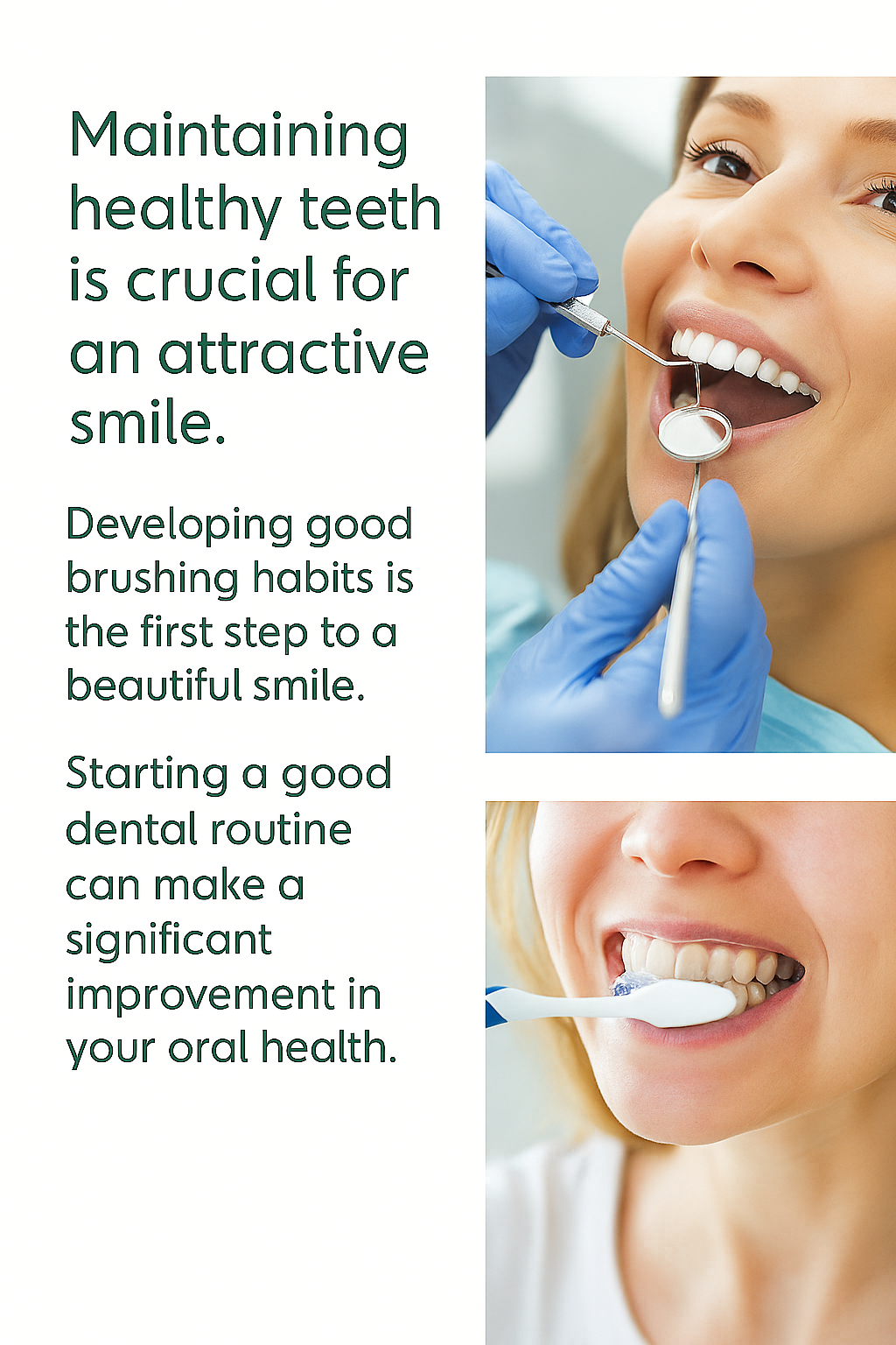 Informative graphic promoting dental health with images of dental care practices, ideal for health awareness campaigns and educational materials.