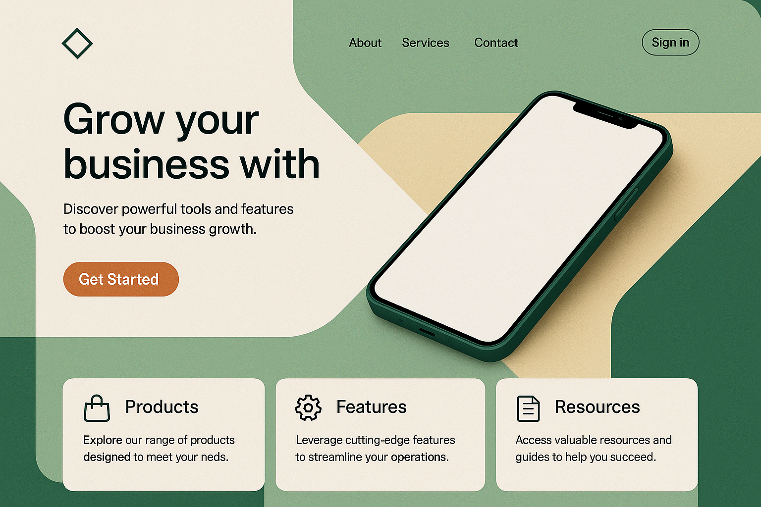 Modern Landing Page Design Featuring a Green Phone