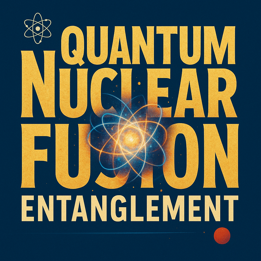 Bold graphic design featuring the concepts of quantum nuclear fusion and entanglement, ideal for educational content or science-themed promotions.