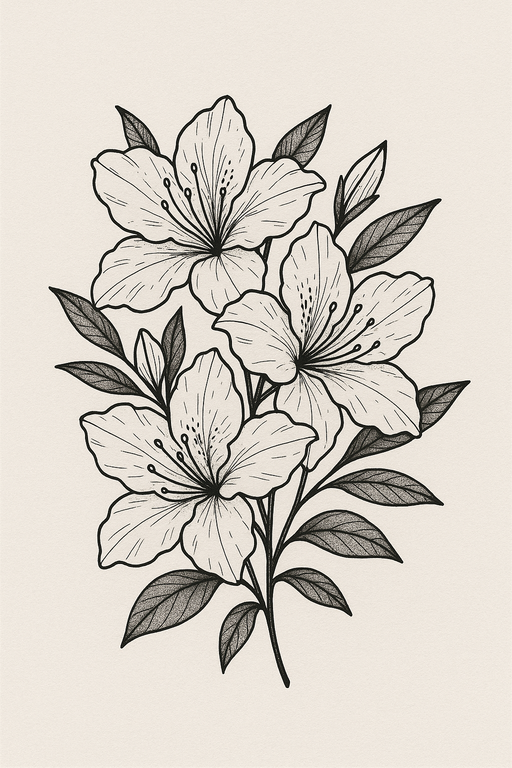 /Collection: /by davooda/Type: PNG/A detailed black and white illustration of lily flowers, showcasing intricate line work and botanical elements. Suitable for art prints, branding, or decorative uses.