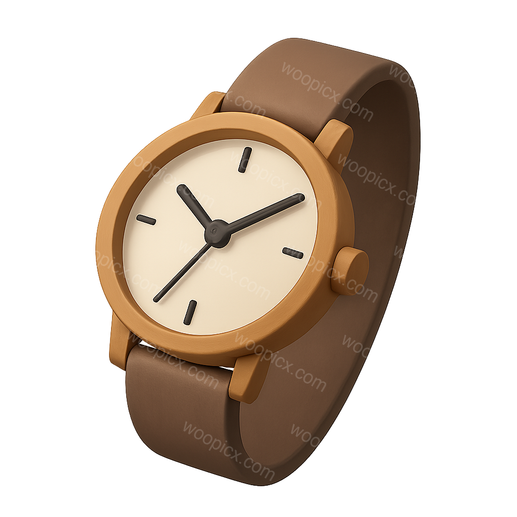 This image features a sleek, minimalist 3D wristwatch with a smooth brown strap and a simple face, showcasing a modern design aesthetic.