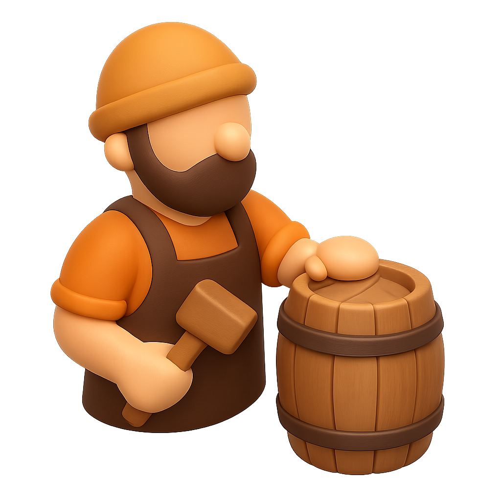 3D Cooper Barrel Maker Icon in Isometric View
