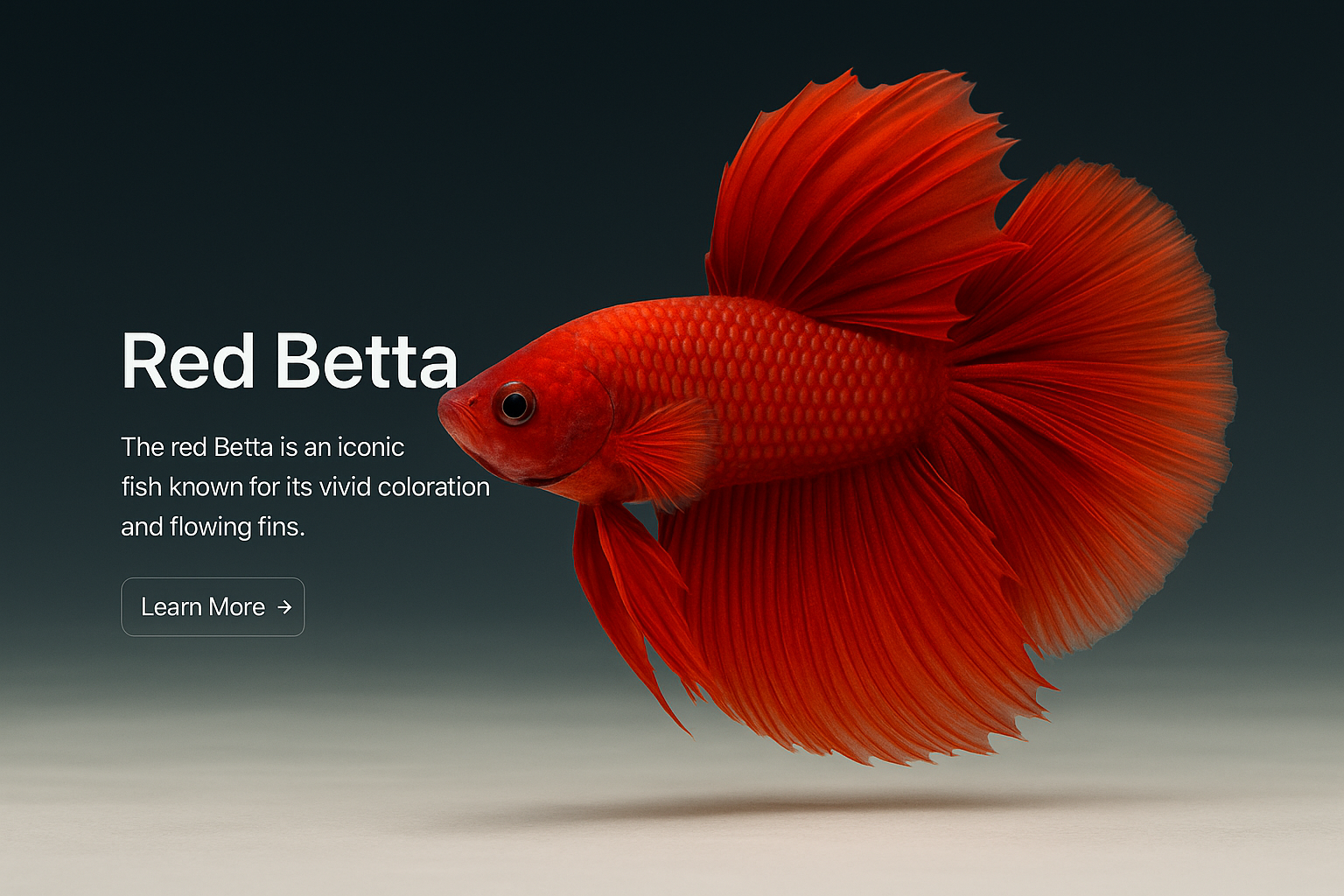 This image showcases a stunning red Betta fish, highlighted against a dark gradient background. It features a clear label, a concise title, and a call-to-action button, all designed for a stylish web page layout.