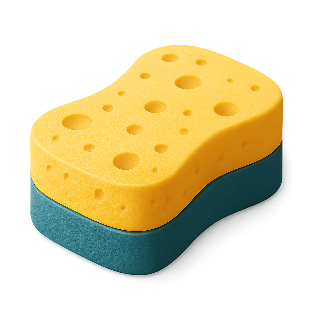 3D Yellow Sponge Icon with Blue Base in Isometric View
