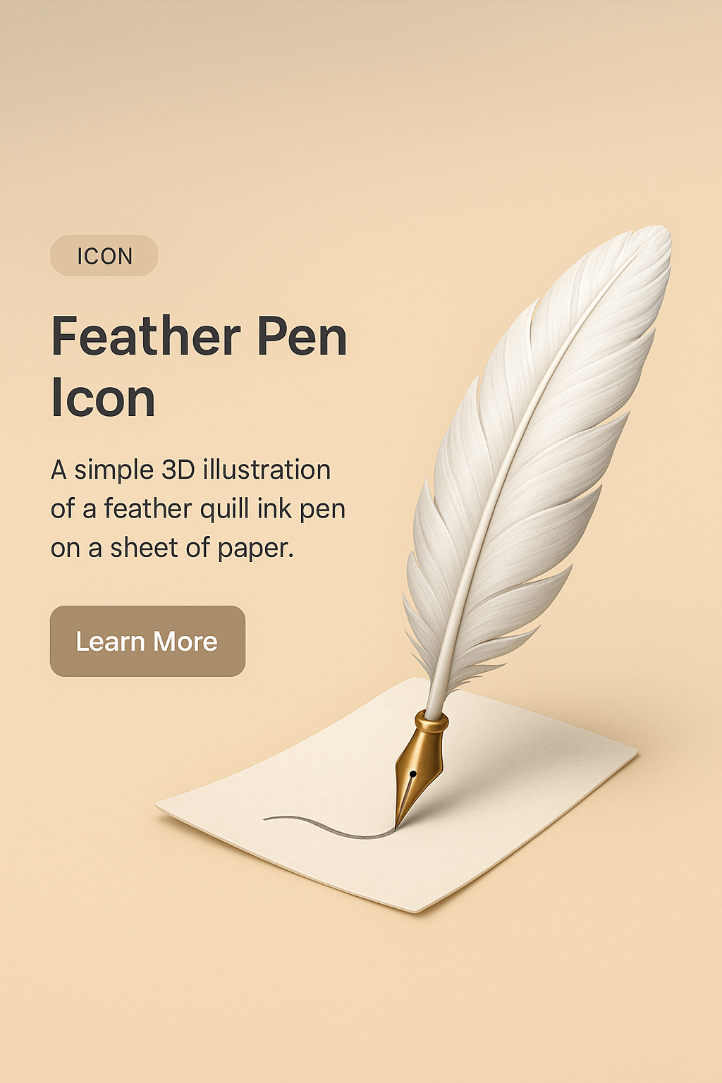 Detailed 3D Feather Pen Icon Illustration with Text Elements
