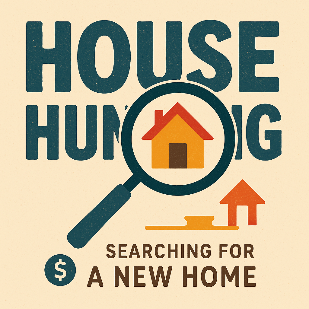 /Collection: /by davooda/Type: PNG/Colorful illustration representing the concept of house hunting, featuring a magnifying glass over a house icon. Ideal for real estate promotions or marketing materials.