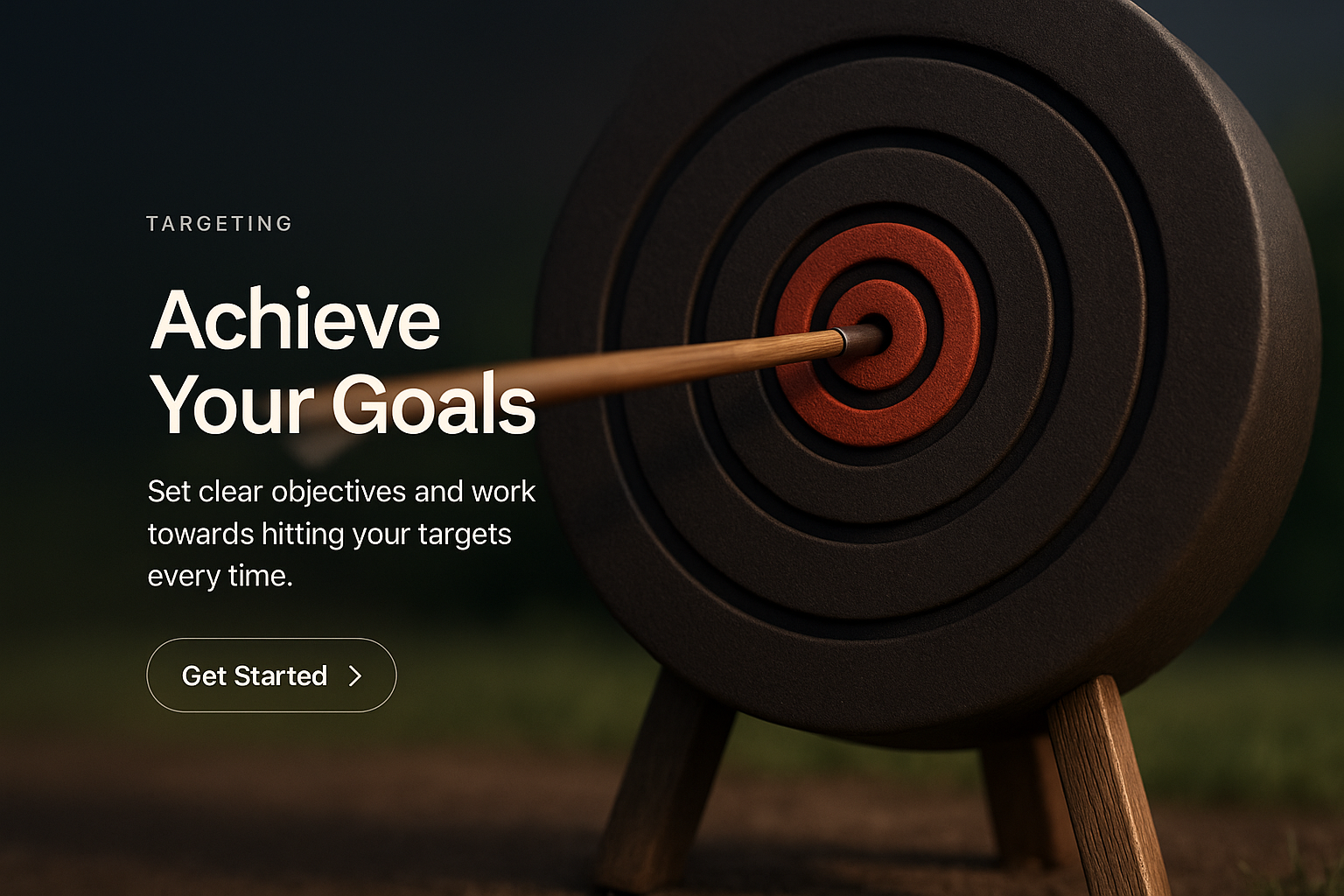 A visually appealing web page design showcasing a bullseye icon, with a gradient background and clear call-to-action button. The layout emphasizes clarity and style.