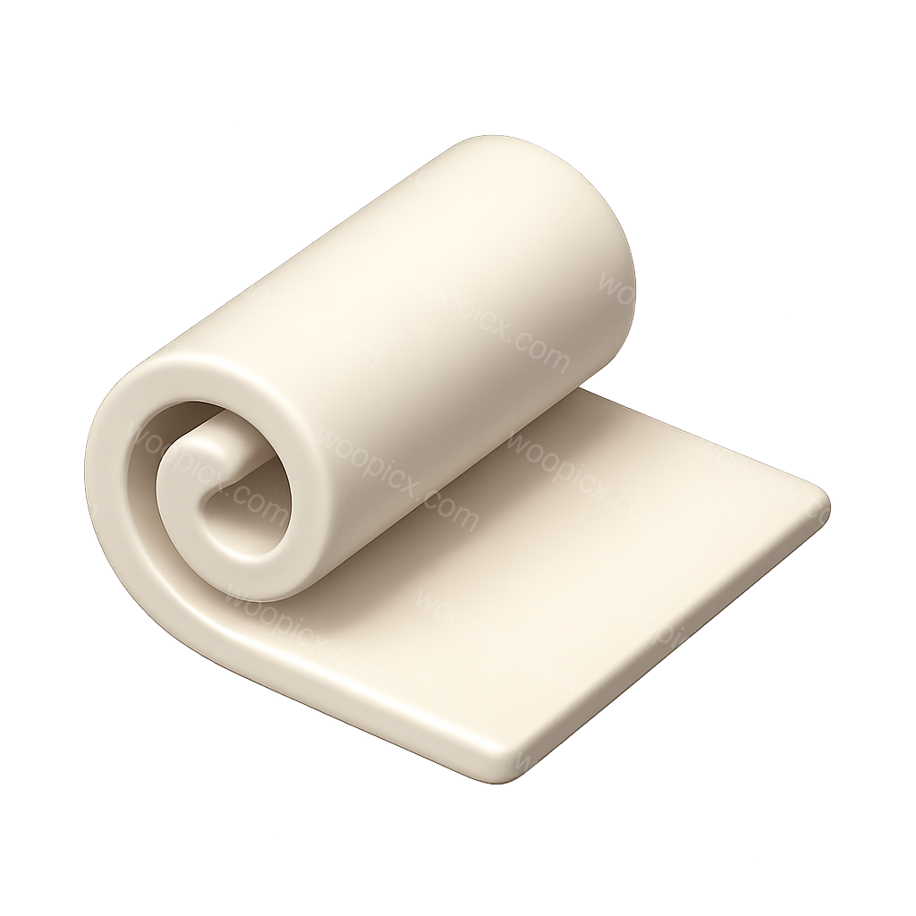 A three-dimensional representation of a rolled-up piece of paper, designed with a smooth, volumetric appearance and a transparent background, showcasing a three-quarter view.
