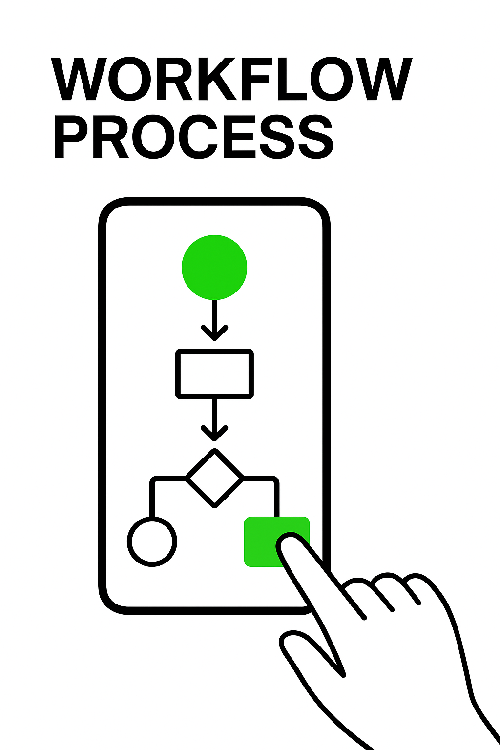 /Collection: /by davooda/Type: PNG/A clean and modern infographic illustrating a workflow process with interactive elements. Ideal for presentations or educational content related to process management.