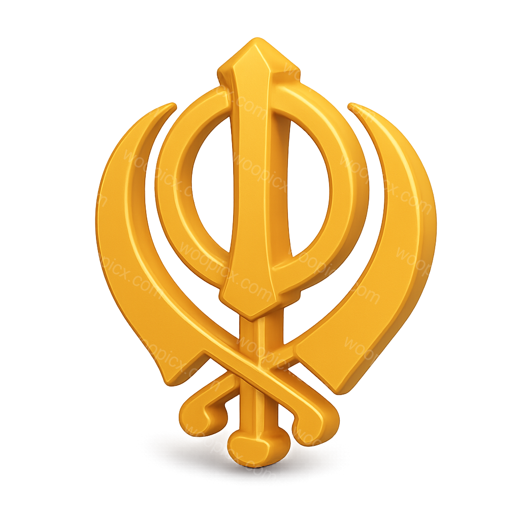 /Premium/Collection: /by davooda/Type: PNG/A vibrant 3D representation of the Khanda Sikh symbol, designed with a glossy golden finish. The icon features a three-quarter view, enhancing its volumetric and isometric qualities against a transparent background.